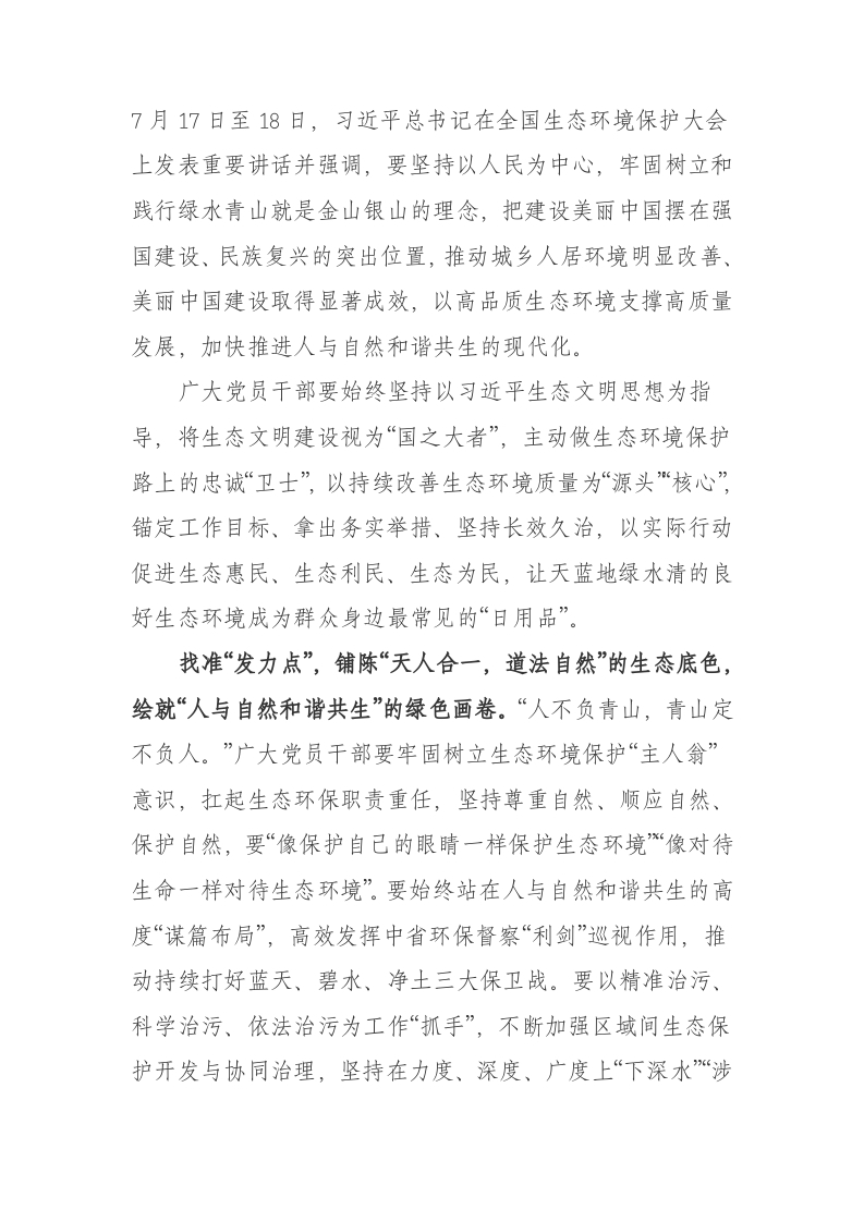 / 学习总书记生态环境保护大户讲话心得体会之三