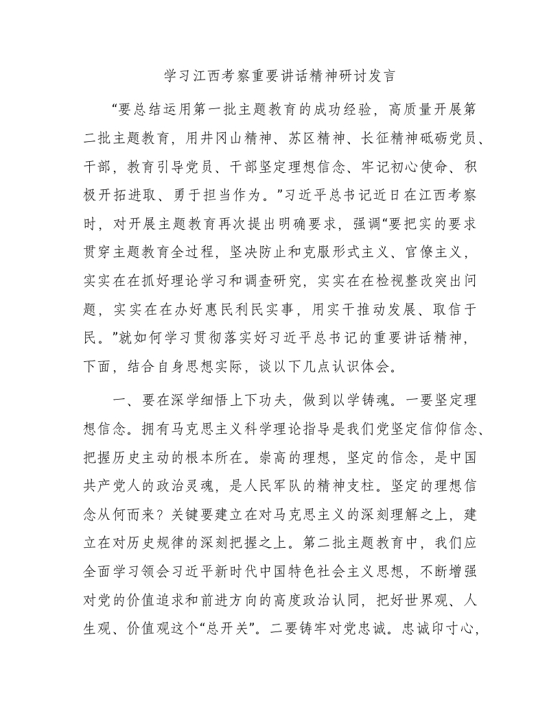 / 学习江西考察重要讲话精神研讨发言(心得体会)