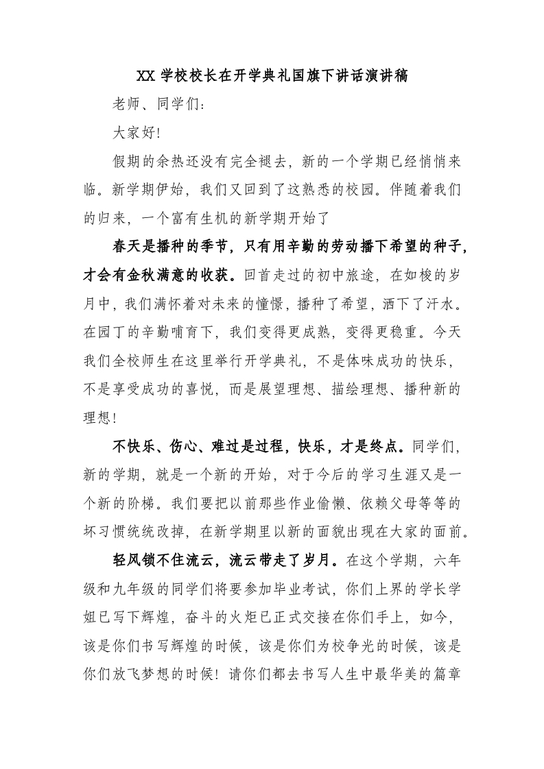 / 学校校长在开学典礼国旗下讲话演讲稿