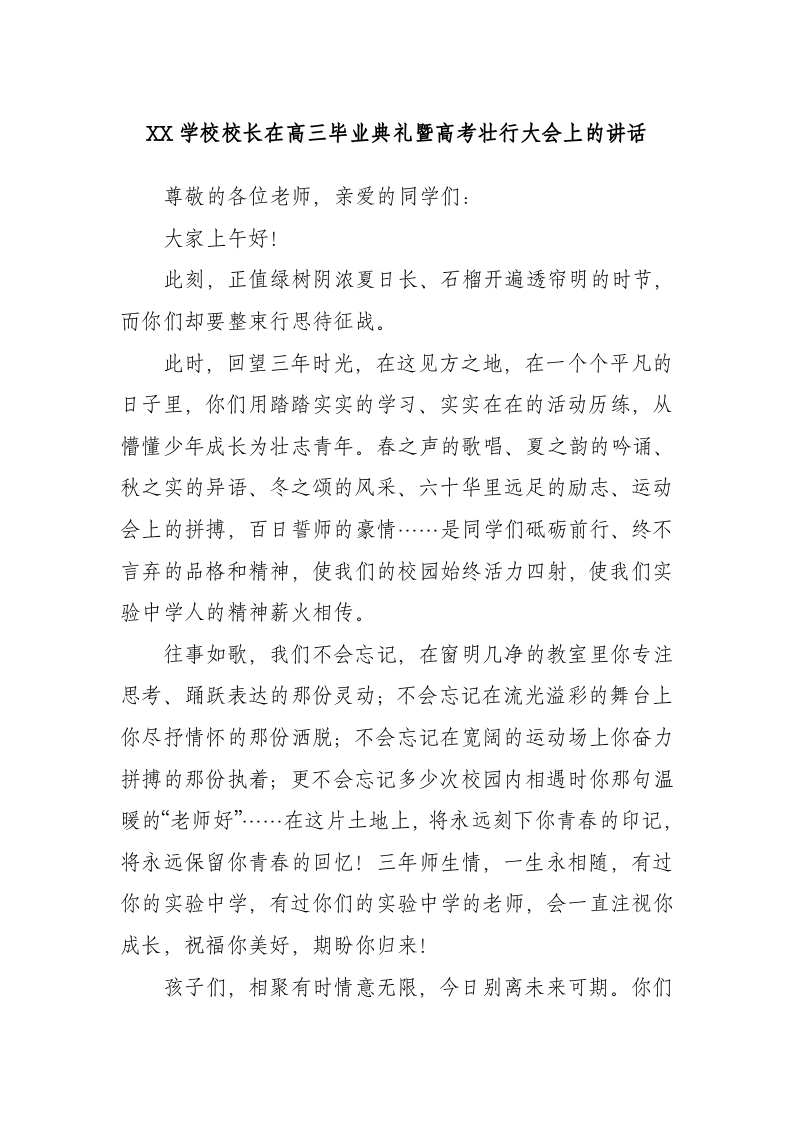 / 学校校长在高三毕业典礼暨高考壮行大会上的讲话