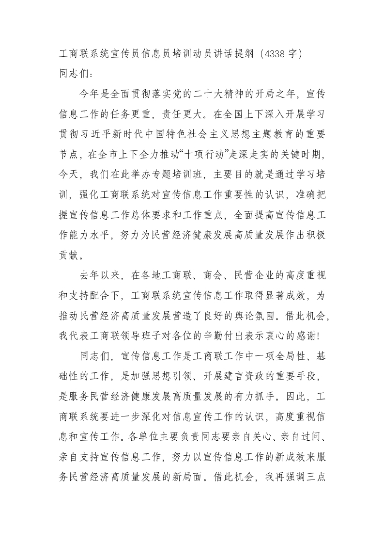 宣传员信息员培训动员讲话提纲