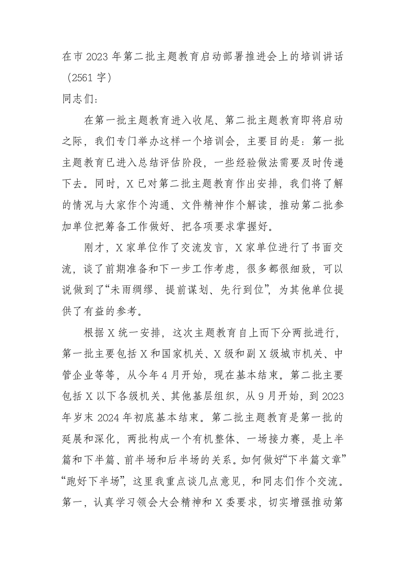 / 市2023年第二批主题教育启动部署推进会上的培训讲话