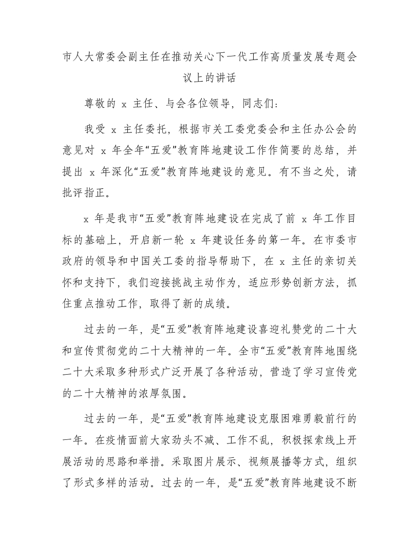 / 市人大副主任在推动关心下一代工作高质量发展专题会议上的讲话