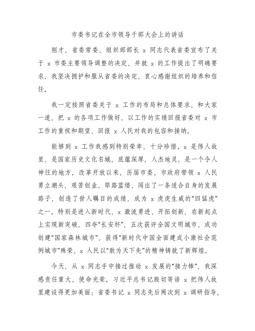 / 市委书记任职表态讲话