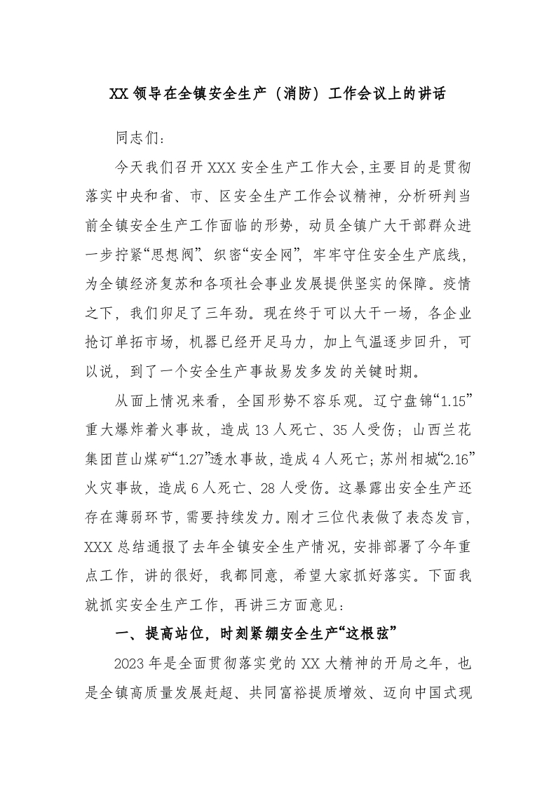 / 领导在全镇安全生产(消防)工作会议上的讲话