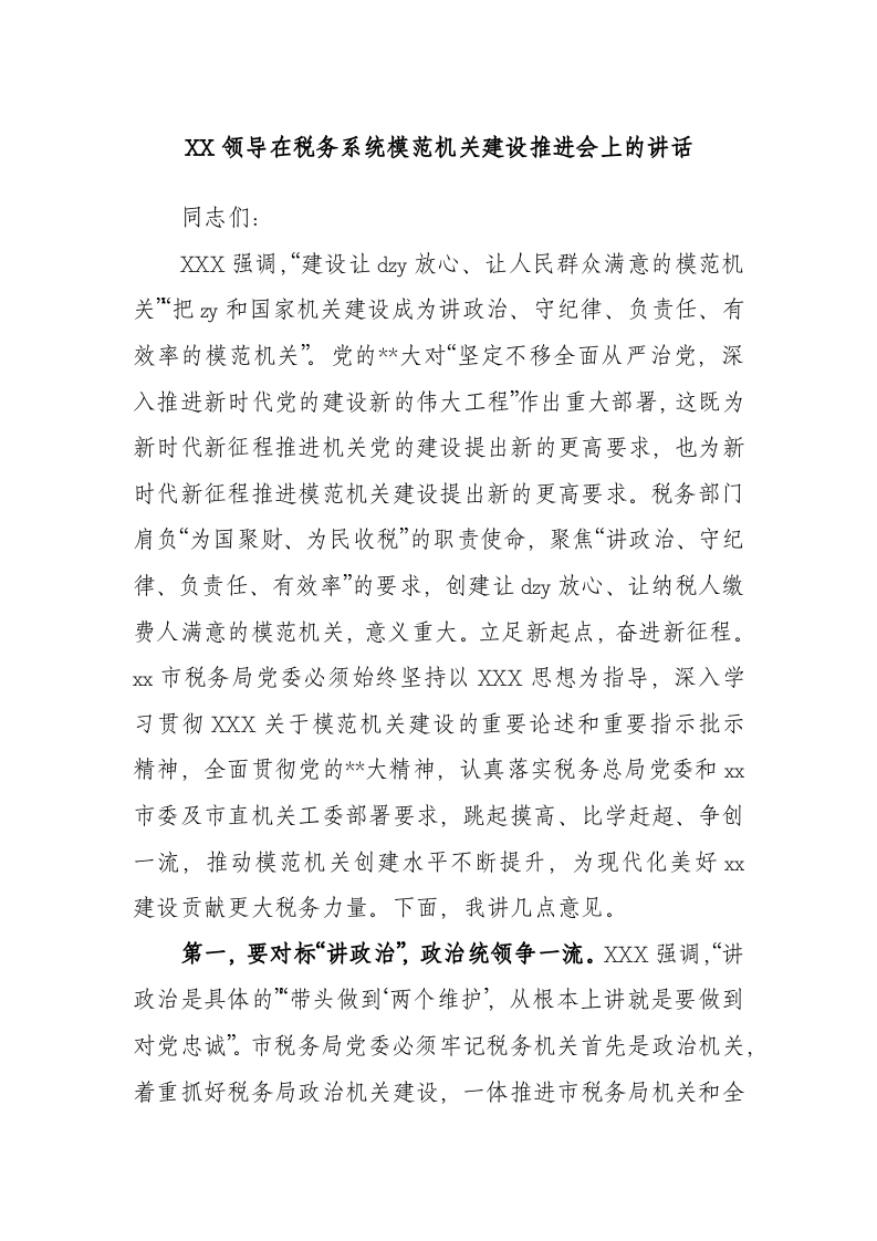 / 领导在税务系统模范机关建设推进会上的讲话