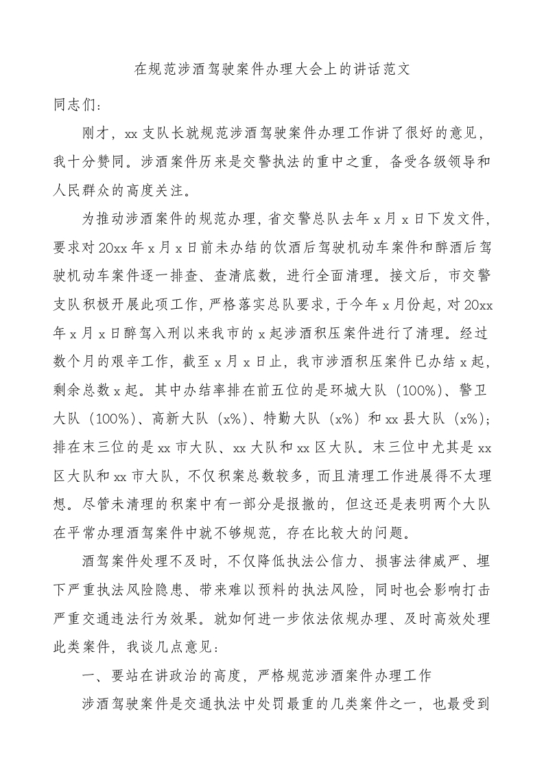 / 领导讲话在规范涉酒驾驶案件办理大会上的讲话范文