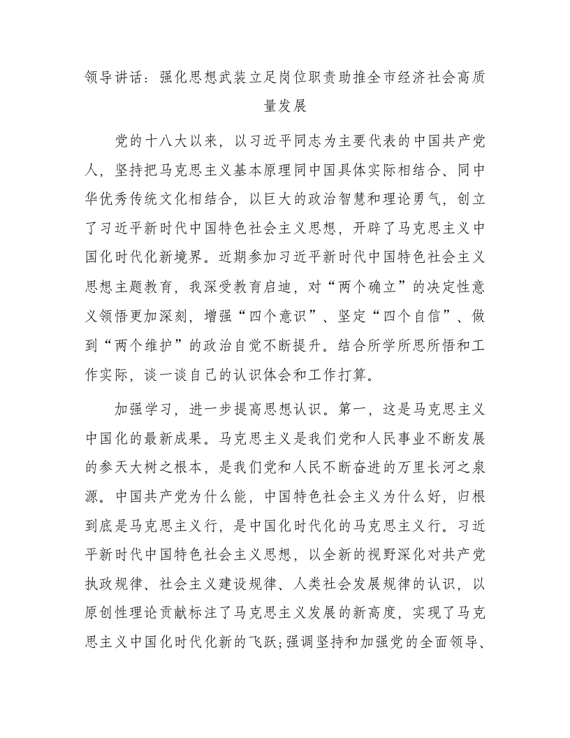 领导讲话:强化思想武装立足岗位职责助推全市经济社会高质量发展