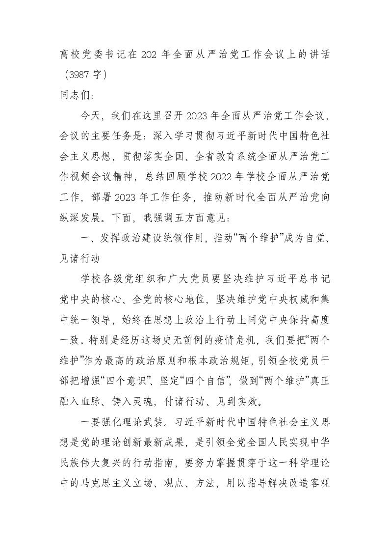 / 高校党委书记在2023年全面从严治党工作会议上的讲话