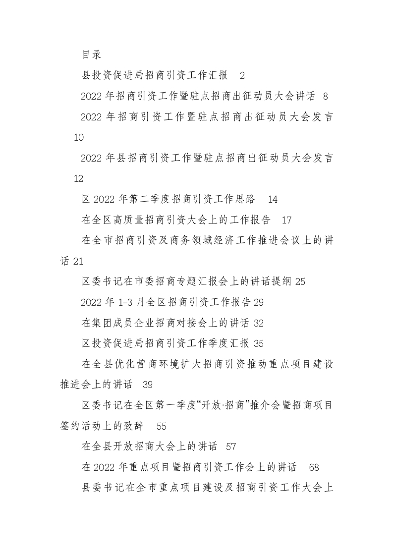(25篇)招商引资讲话、致辞、发言、汇报、报告资料汇编