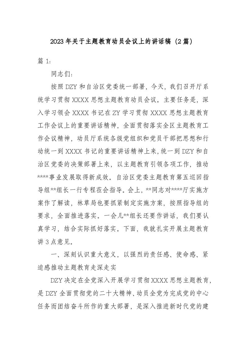 / (2篇)2023年主题教育动员会议上的讲话稿