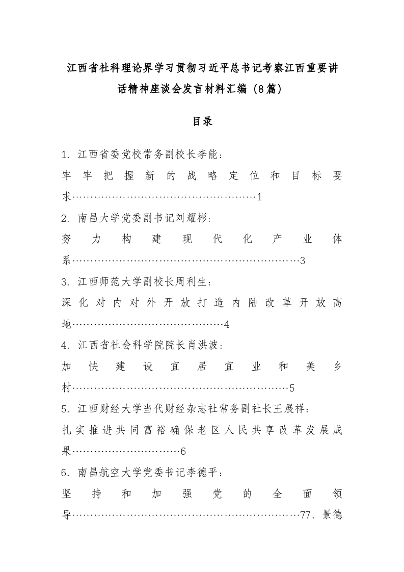 / (8篇)XX省社科理论界学习贯彻习近平总书记考察江西重要讲话精神座谈会发言材料汇编