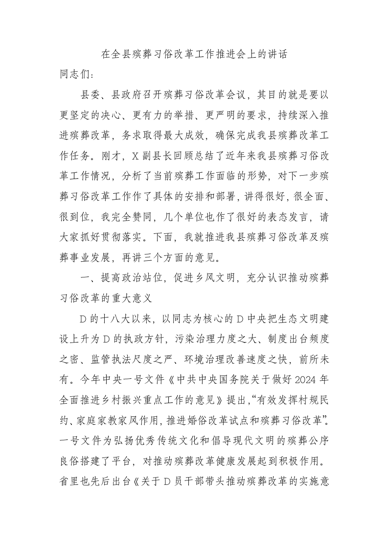 / 在全县殡葬习俗改革工作推进会上的讲话