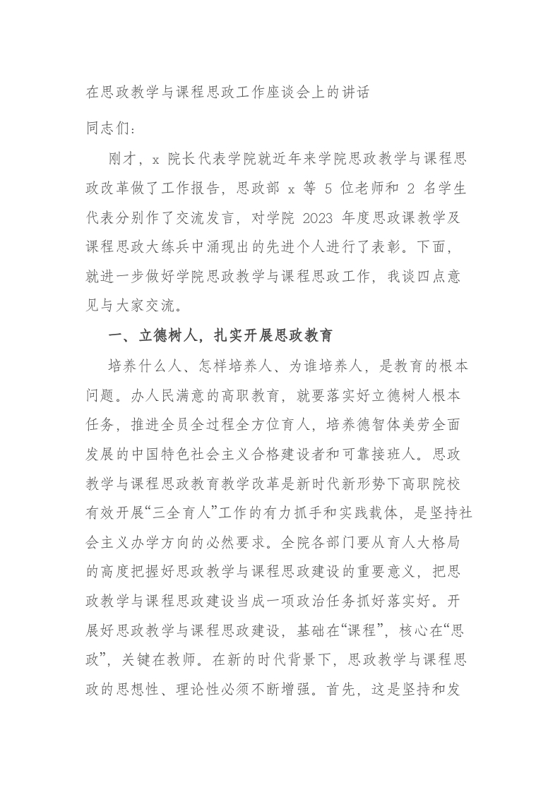 / 在思政教学与课程思政工作座谈会上的讲话