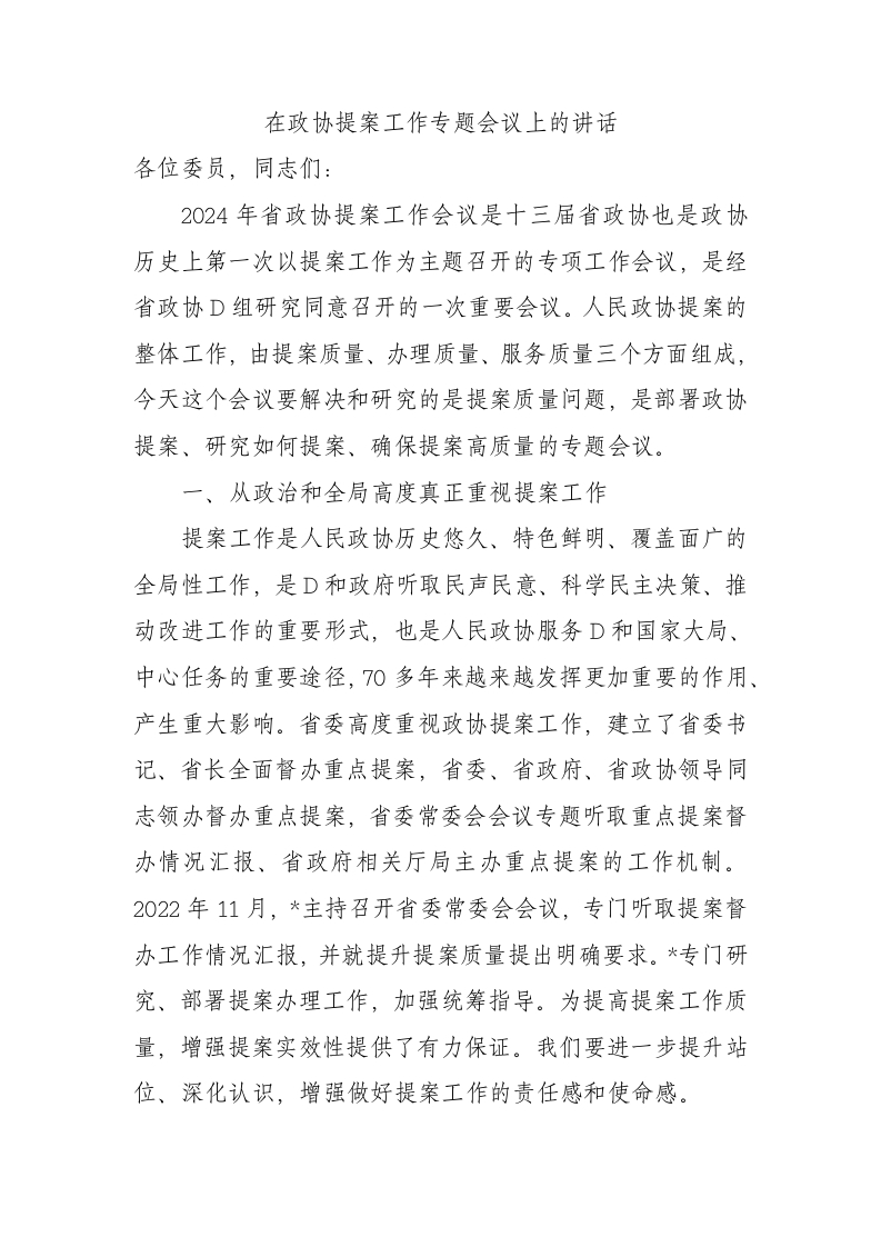/ 在政协提案工作专题会议上的讲话
