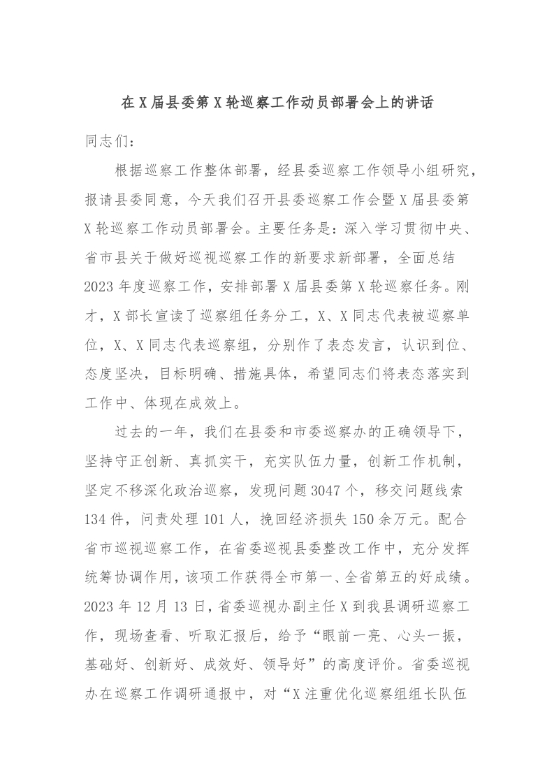 / 在X届县委第X轮巡察工作动员部署会上的讲话稿