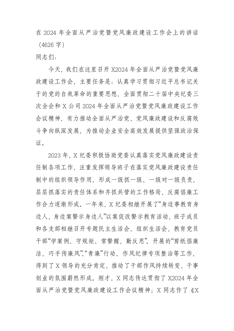 / 在2024年全面从严治党暨党风廉政建设工作会上的讲话