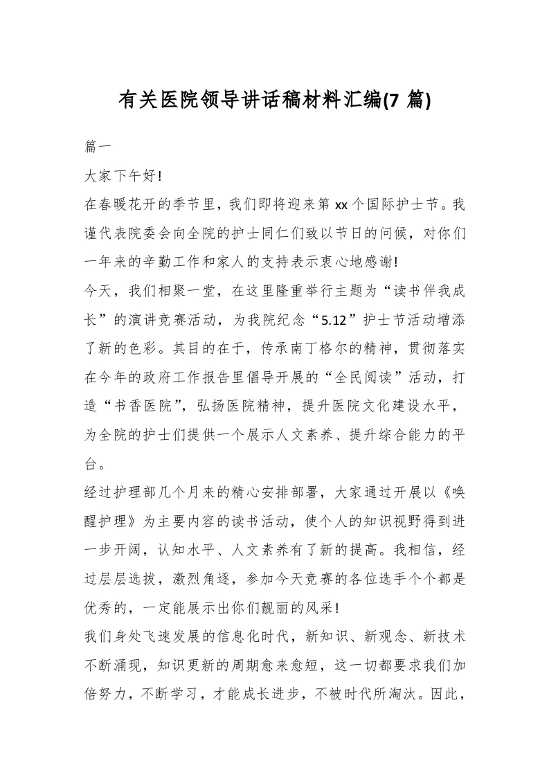 / (7篇)有关医院领导讲话稿稿材料汇编