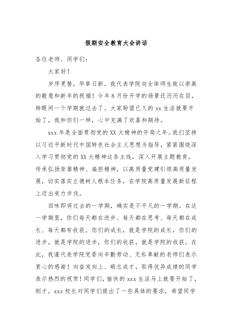 / 假期安全教育大会讲话稿