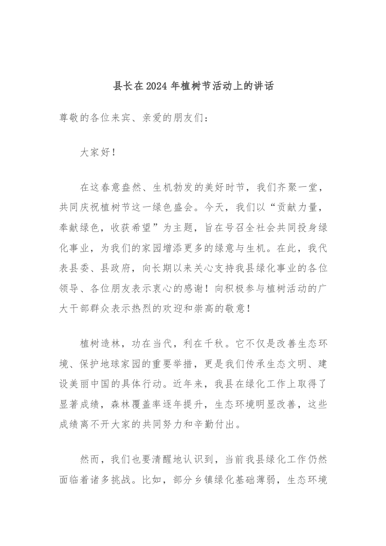 / 县长在2024年植树节活动上的讲话稿