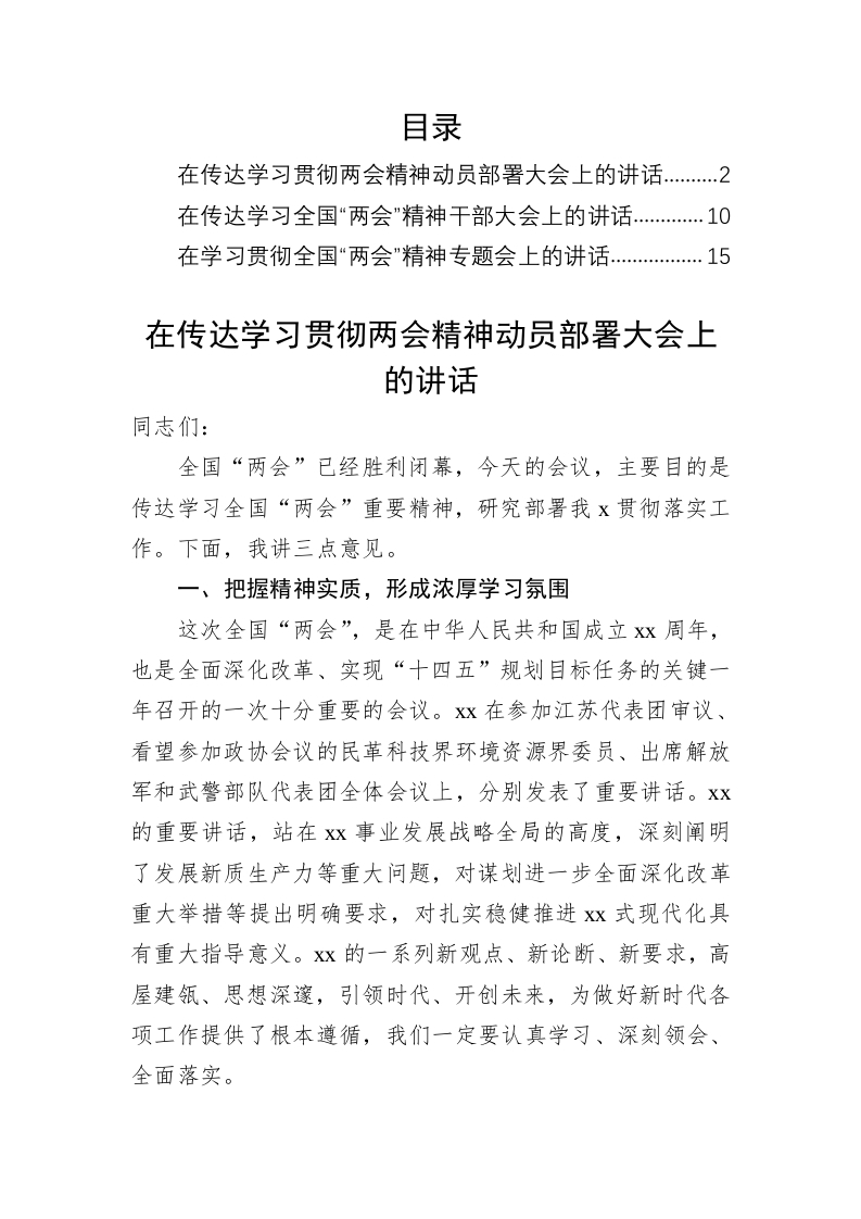 / 在传达学习贯彻两会精神动员部署大会上的讲话稿