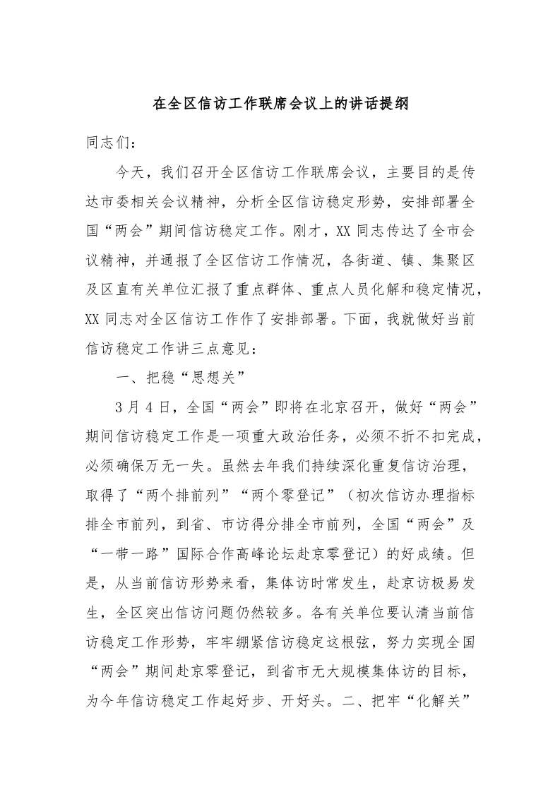 / 在全区信访工作联席会议上的讲话稿提纲