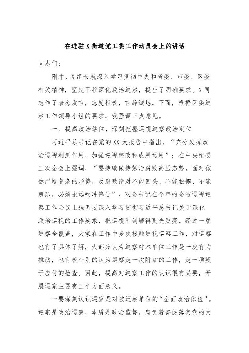 / 在进驻X街道党工委工作动员会上的讲话稿