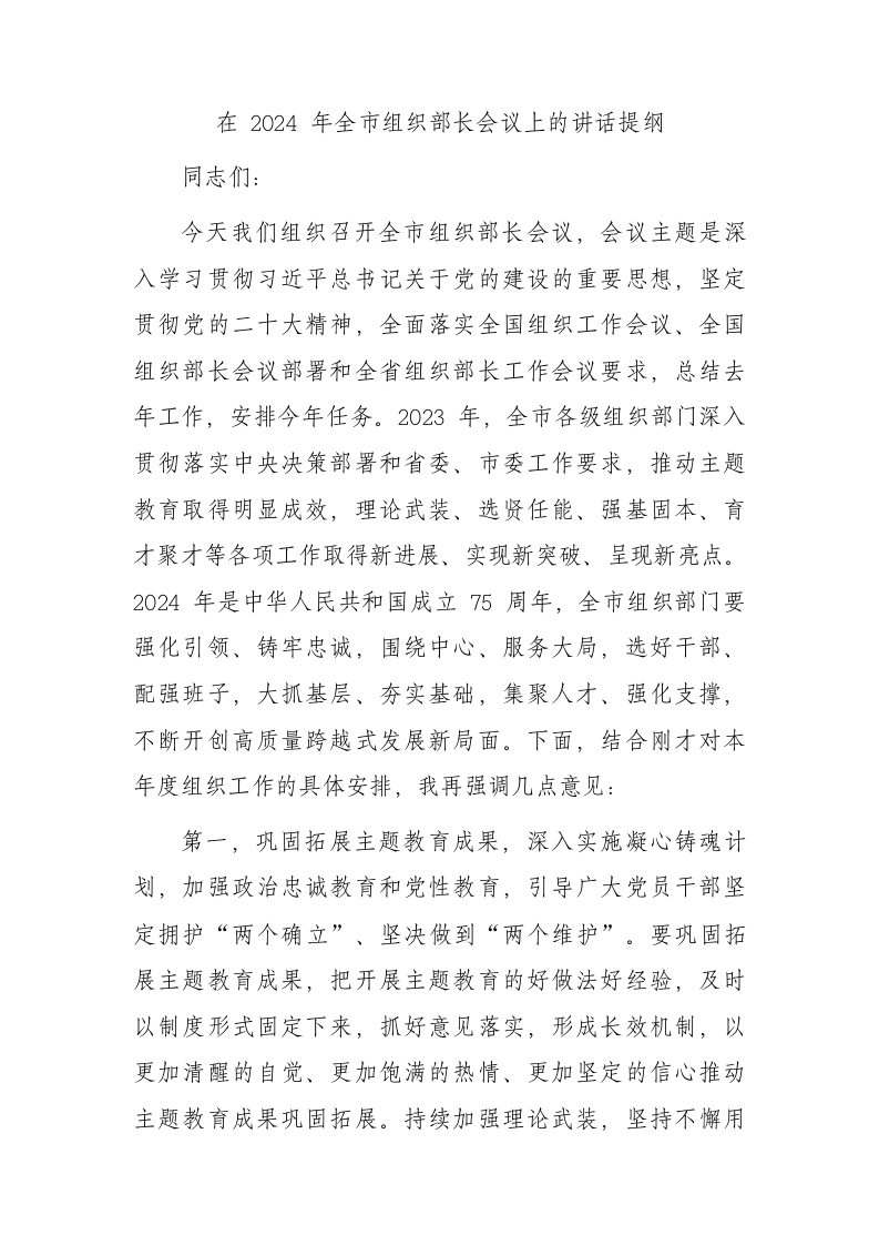 / 在2024年全市组织部长会议上的讲话