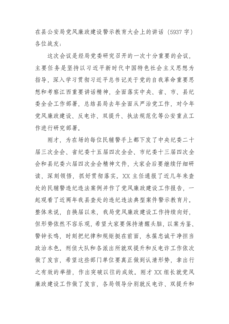 / 在县公安局党风廉政建设警示教育大会上的讲话