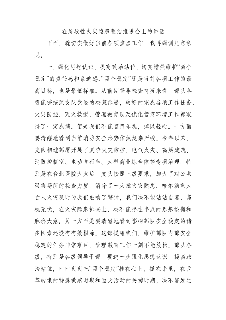 / 在阶段性火灾隐患整治推进会上的讲话