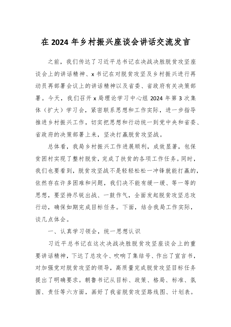 / 在2024年乡村振兴座谈会讲话交流发言