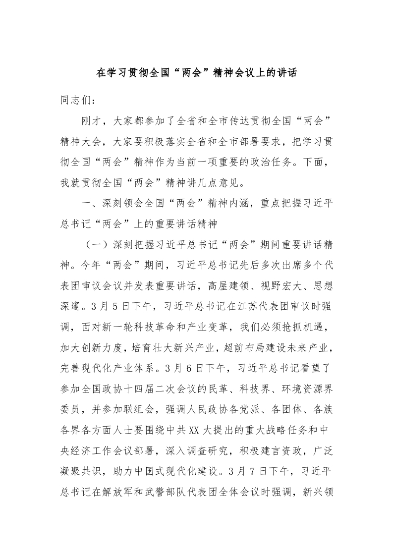 / 在学习贯彻全国“两会”精神会议上的讲话