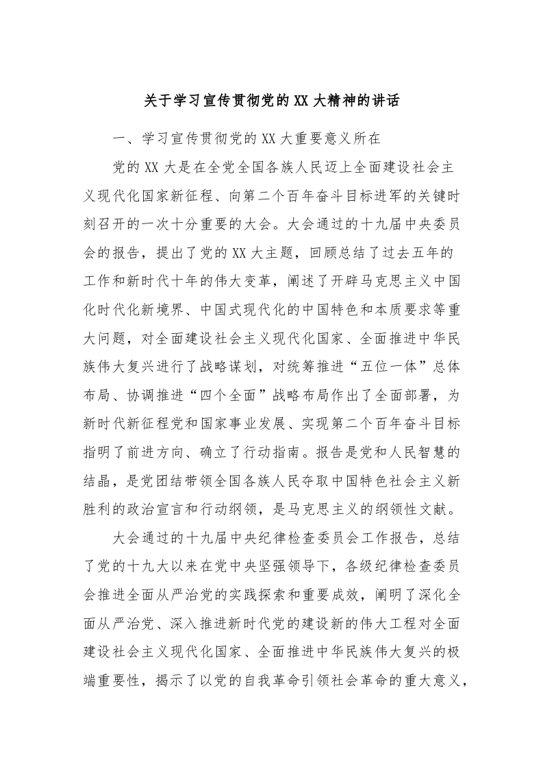 / 关于学习宣传贯彻党的XX大精神的讲话稿