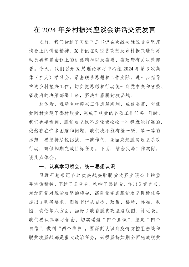 在2024年乡村振兴座谈会讲话稿交流发言稿