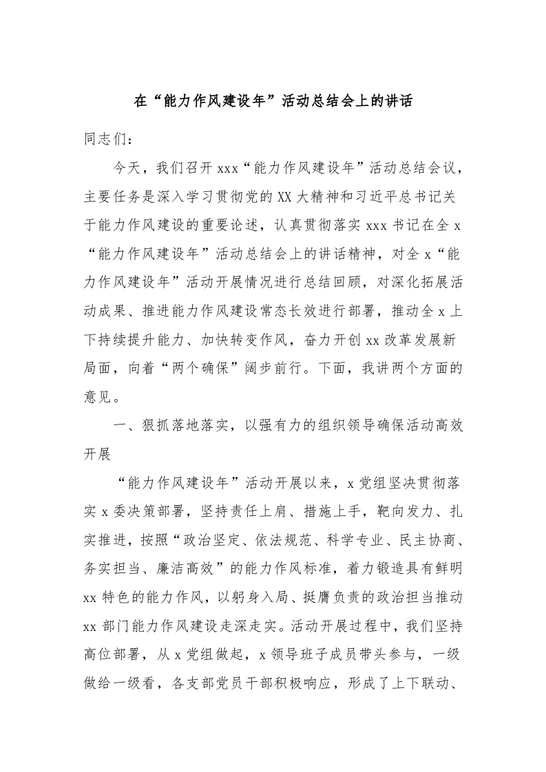 / 在“能力作风建设年”活动总结会上的讲话稿
