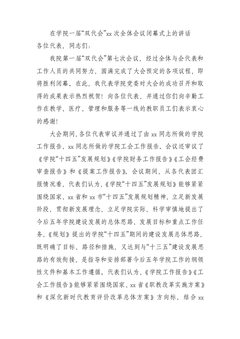 / 在学院一届“双代会”xx次全体会议闭幕式上的讲话