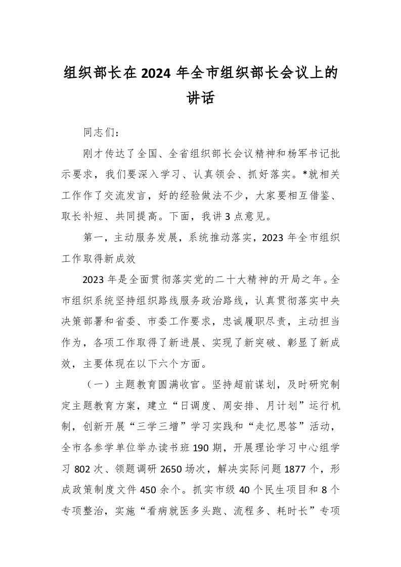 / 组织部长在2024年全市组织部长会议上的讲话稿