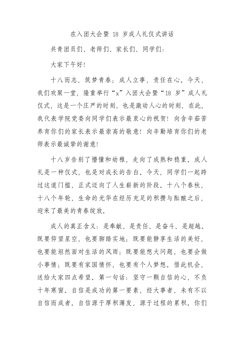 / 在入团大会暨18岁成人礼仪式讲话