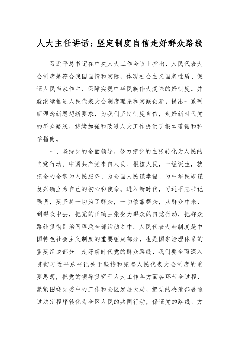 / 人大主任讲话:坚定制度自信 走好群众路线