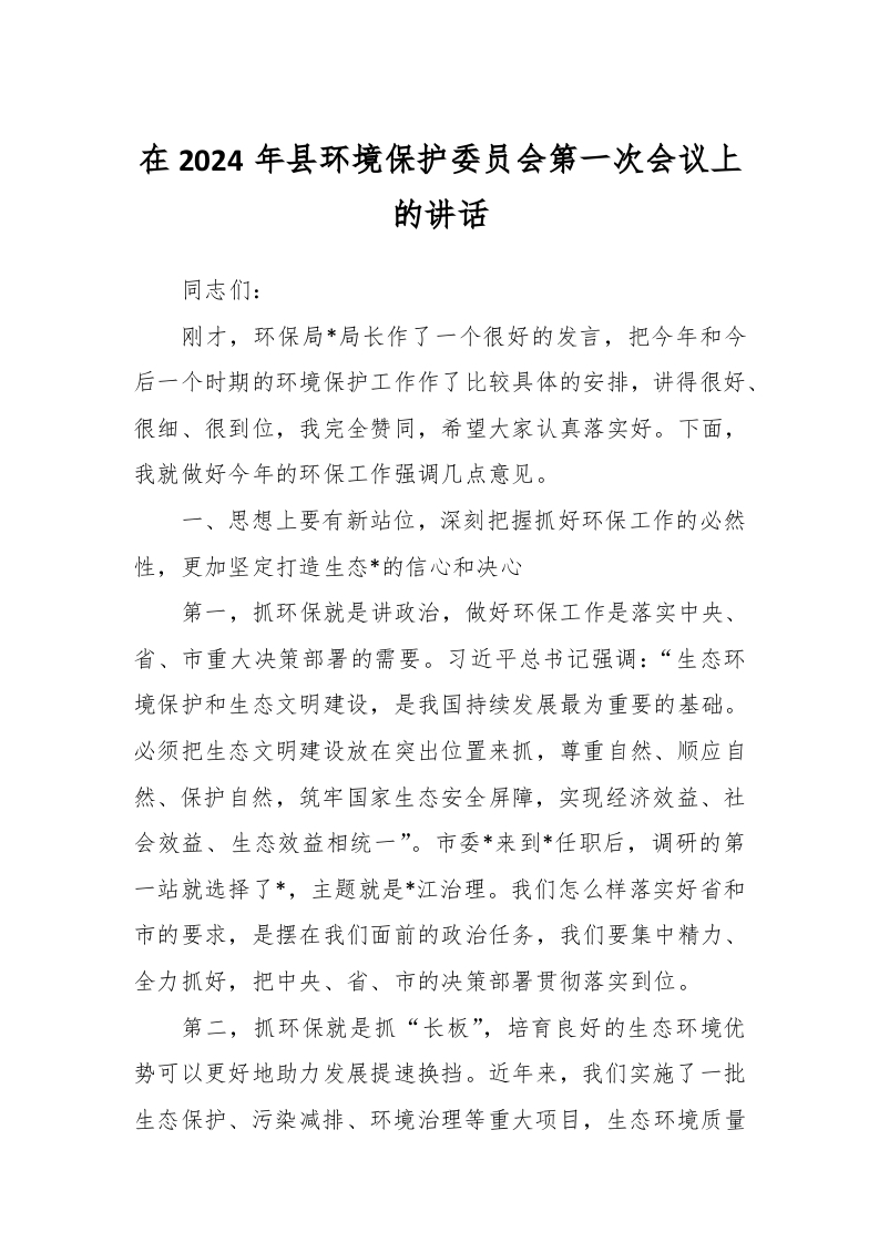 / 在2024年县环境保护委员会第一次会议上的讲话