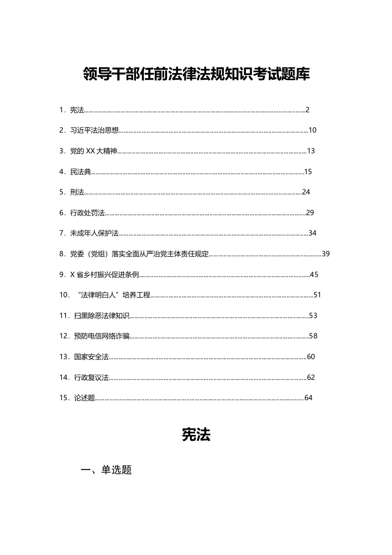 / 领导干部任前法律法规知识考试题库