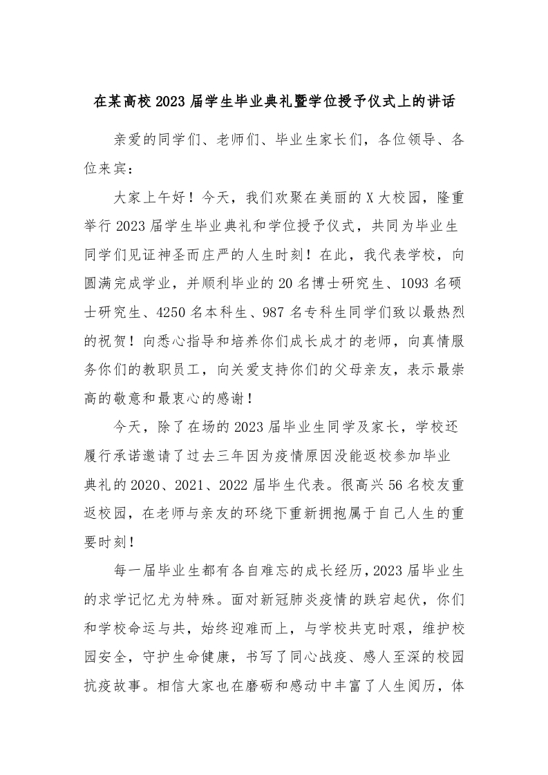 / 在某高校2023届学生毕业典礼暨学位授予仪式上的讲话