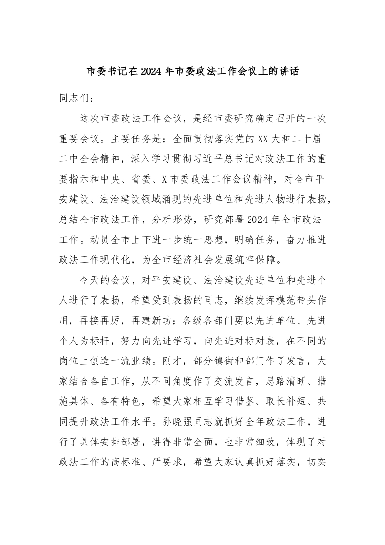 / 市委书记在2024年市委政法工作会议上的讲话