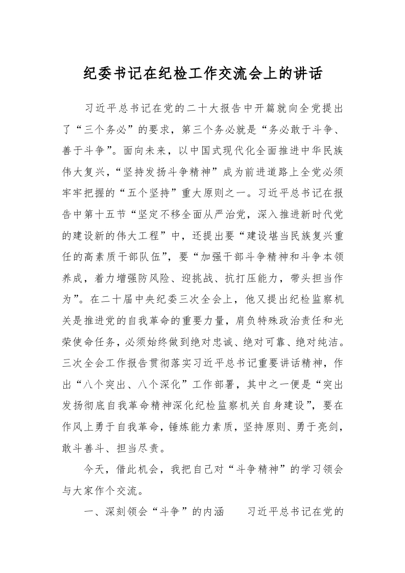 / 纪委书记在纪检工作交流会上的讲话