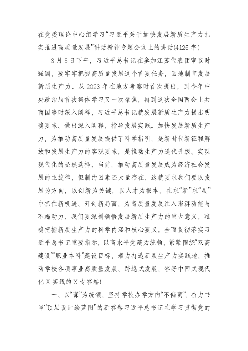 / 加快发展新质生产力扎实推进高质量发展讲话精神专题会议上的讲话