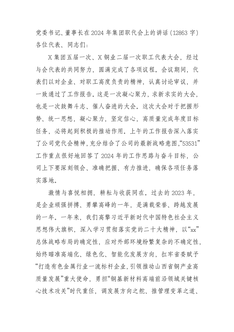 / 国企党委书记、董事长在2024年集团职代会上的讲话