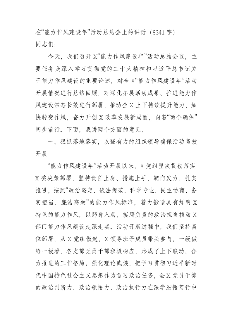 / 在“能力作风建设年”活动总结会上的讲话