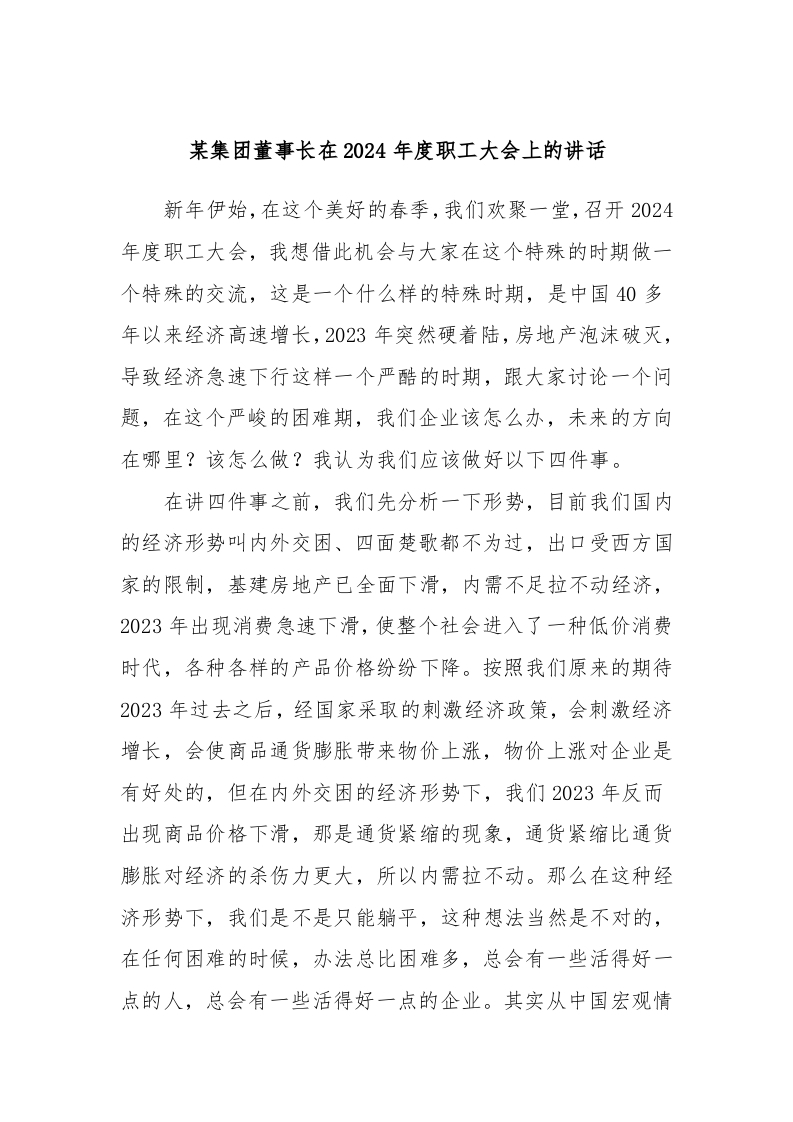 / 某集团董事长在2024年度职工大会上的讲话
