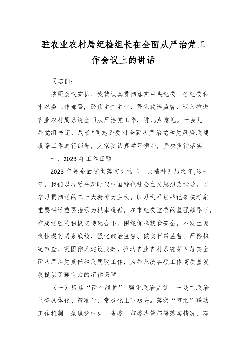 / 驻农业农村局纪检组长在全面从严治党工作会议上的讲话