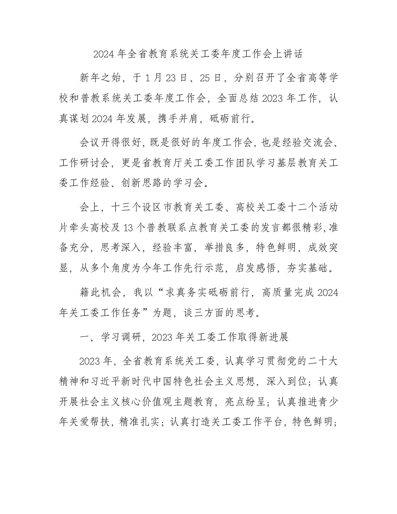 / 2024年全省教育系统关工委年度工作会上讲话